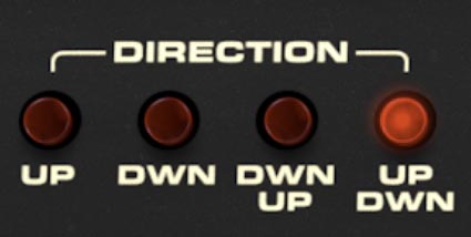 The Direction buttons set the direction of motion through the arpeggiated notes: