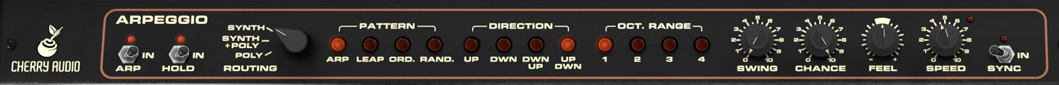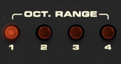 The Oct. Range buttons set how many octaves the arpeggio spans, from 1 to 4.