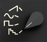 The waveform selector chooses the shape of the modulation. The triangle wave creates smooth up-and-down motion, good for classic vibrato and gentle filter movement. The square wave jumps abruptly between two states, which is useful for trills, rhythmic level chopping, and stepped switching effects. The sine wave is the smoothest and most rounded of the bunch, making it ideal for subtle vibrato and natural-feeling motion.