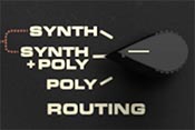 The Routing knob determines which engine architecture is active: Synth, Synth + Poly, or Poly.