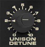 The Unison Detune knob sets the amount of pitch spread between stacked voices in Unison mode.