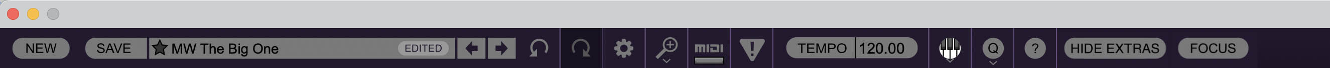 The purple strip at the top of the interface is where you’ll load, save, and create sound presets. It also contains utility functions such as undo/redo, UI zoom and Focus controls, under-the-hood settings, and more. Let’s go over them: