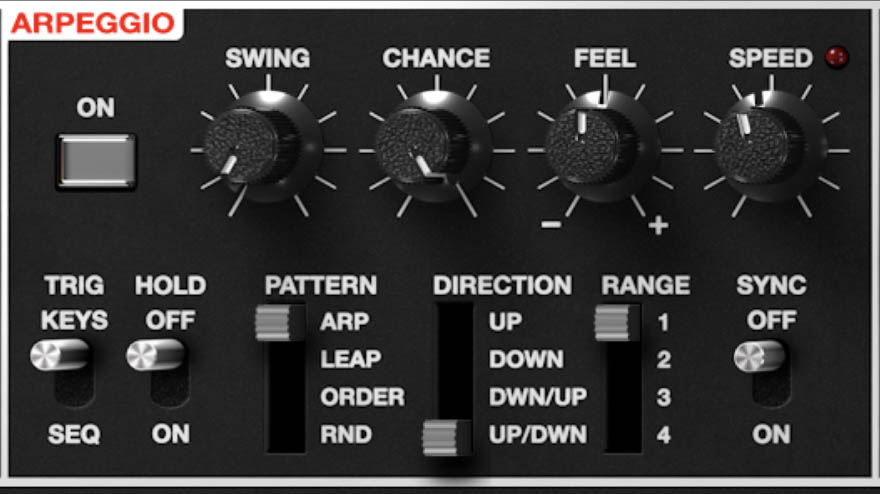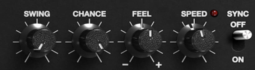 Swing, Chance, Feel, Speed, Sync – Match the functions found in the arpeggiator, offering identical control over groove and timing.