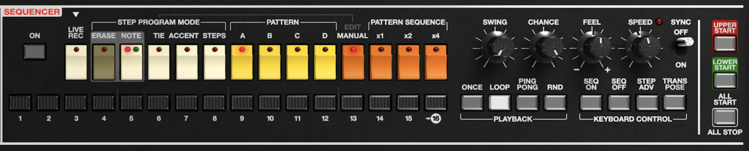 Step Buttons (1–16) – Represent the sequence’s steps. Each can contain a single note, a chord, or a rest.
