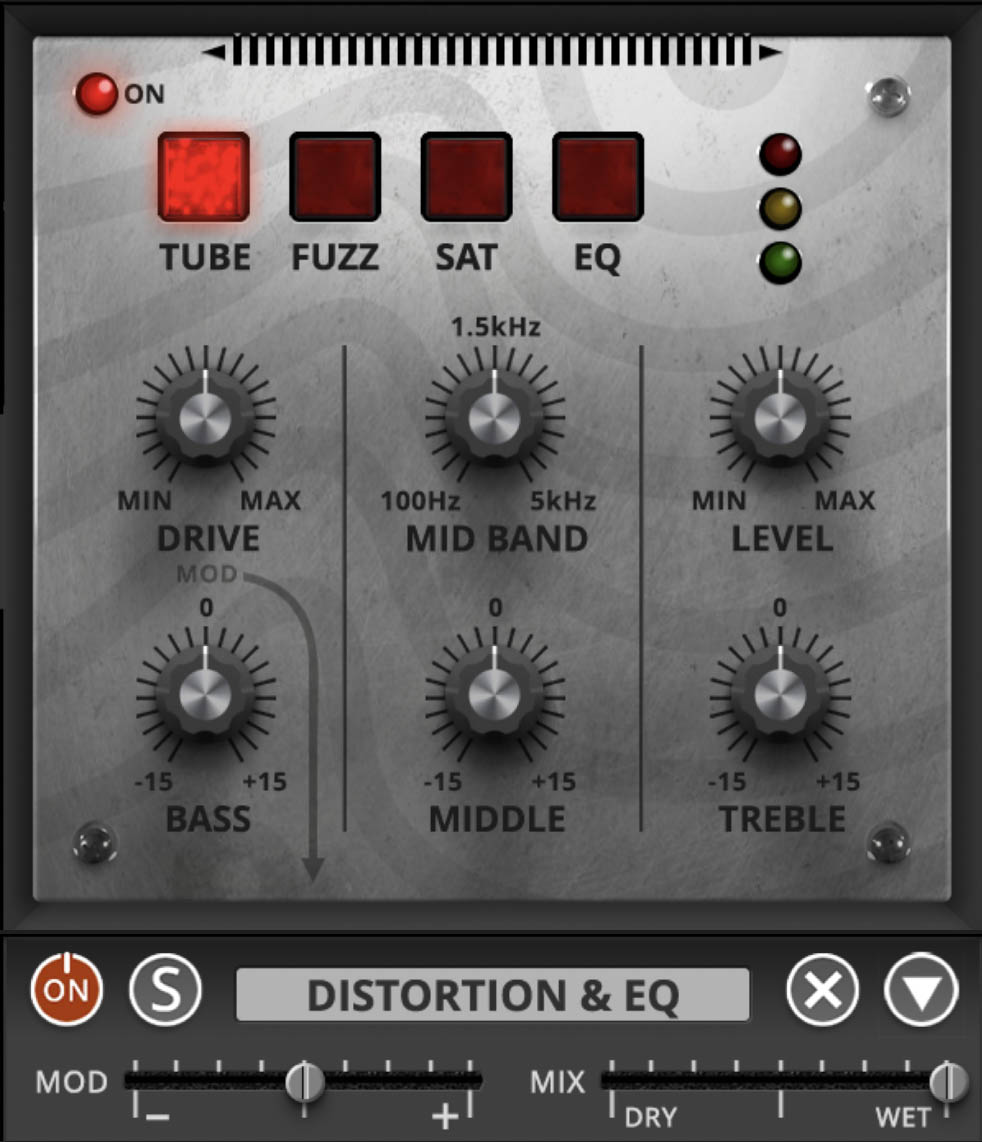 Hiss – Introduces broadband noise, reminiscent of tape or cheap electronics.