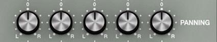 Above each pan knob is a small multi-position routing switch. This is the heart of the mixer.