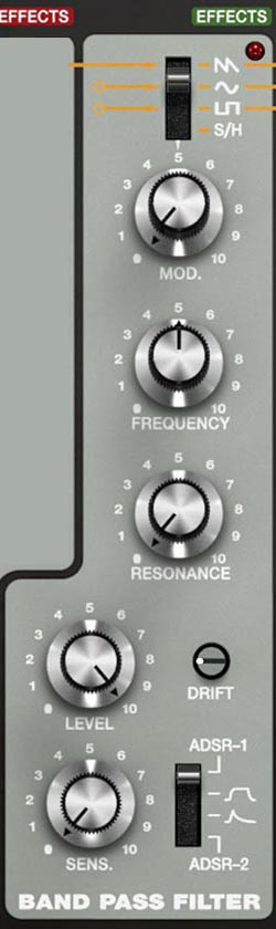 Chooses ADSR-1 or ADSR-2 as the envelope source for the BPF.