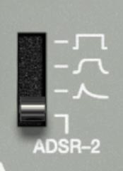 In the VCA section, you’re not locked into a full ADSR every time. This selector lets you choose ADSR-2, or any one of three preset amp envelope shapes.