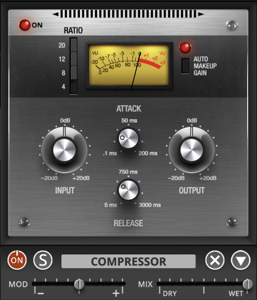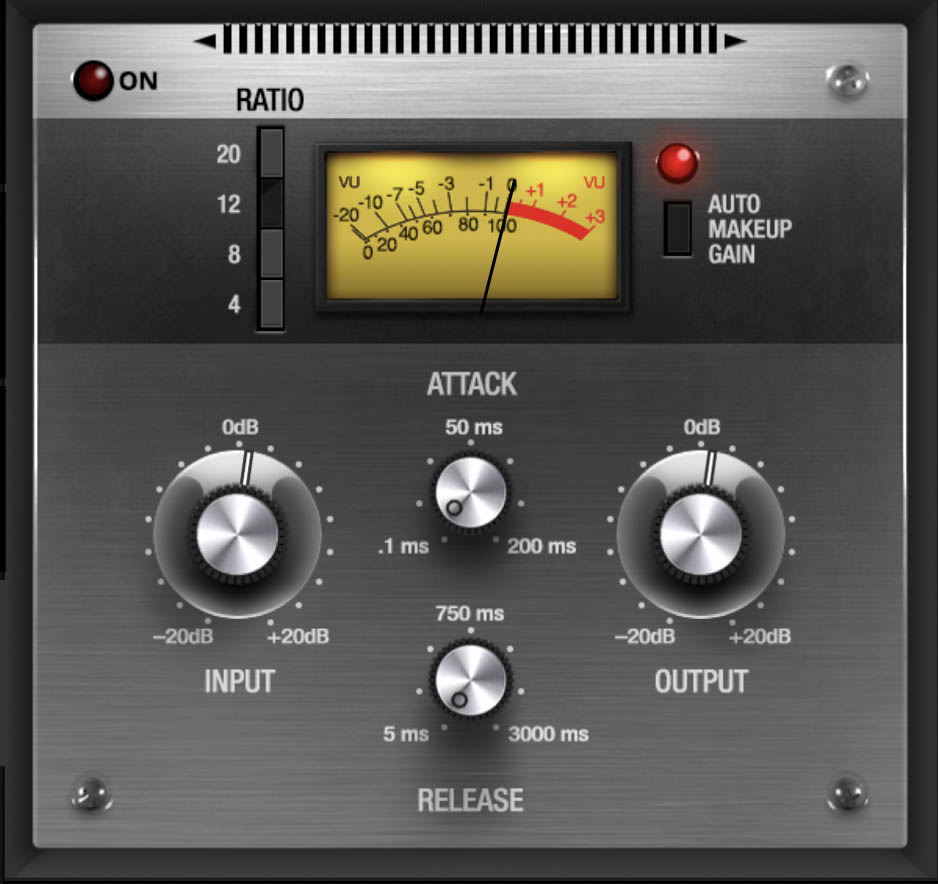 VU Meter – Shows how much gain reduction is being applied, so you can see the effect as well as hear it.