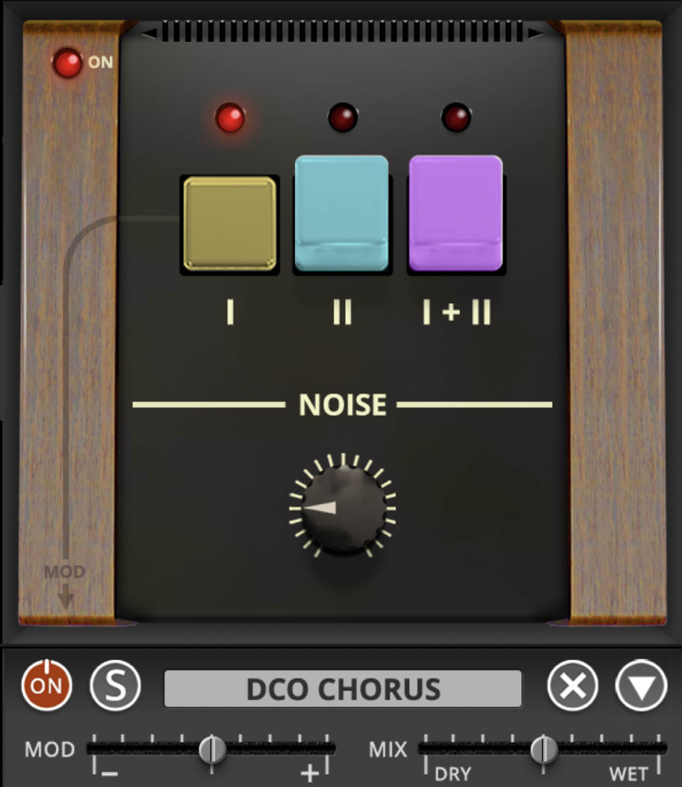 Noise Level (knob) – Adds a subtle analog-style noise floor to the effect chain, helping the chorus feel less digital and more lived–in.