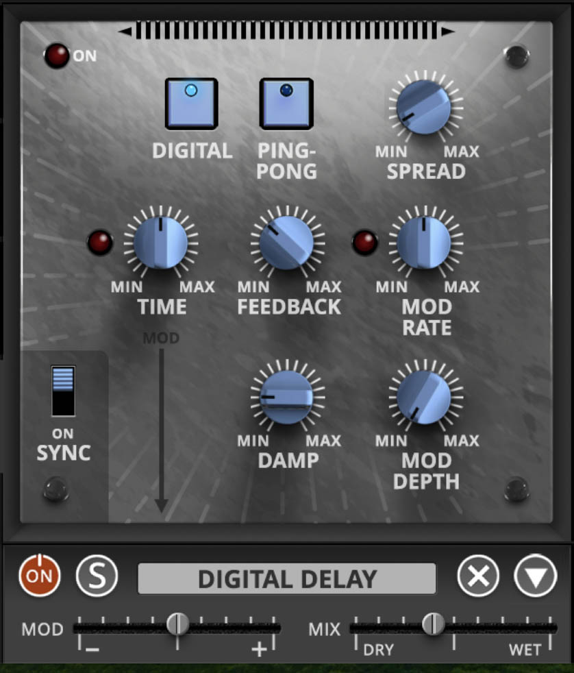 Mod Rate / Mod Depth – Adds modulation to delay time. Subtle settings = chorus shimmer; extreme = pitch warbles and glitching.