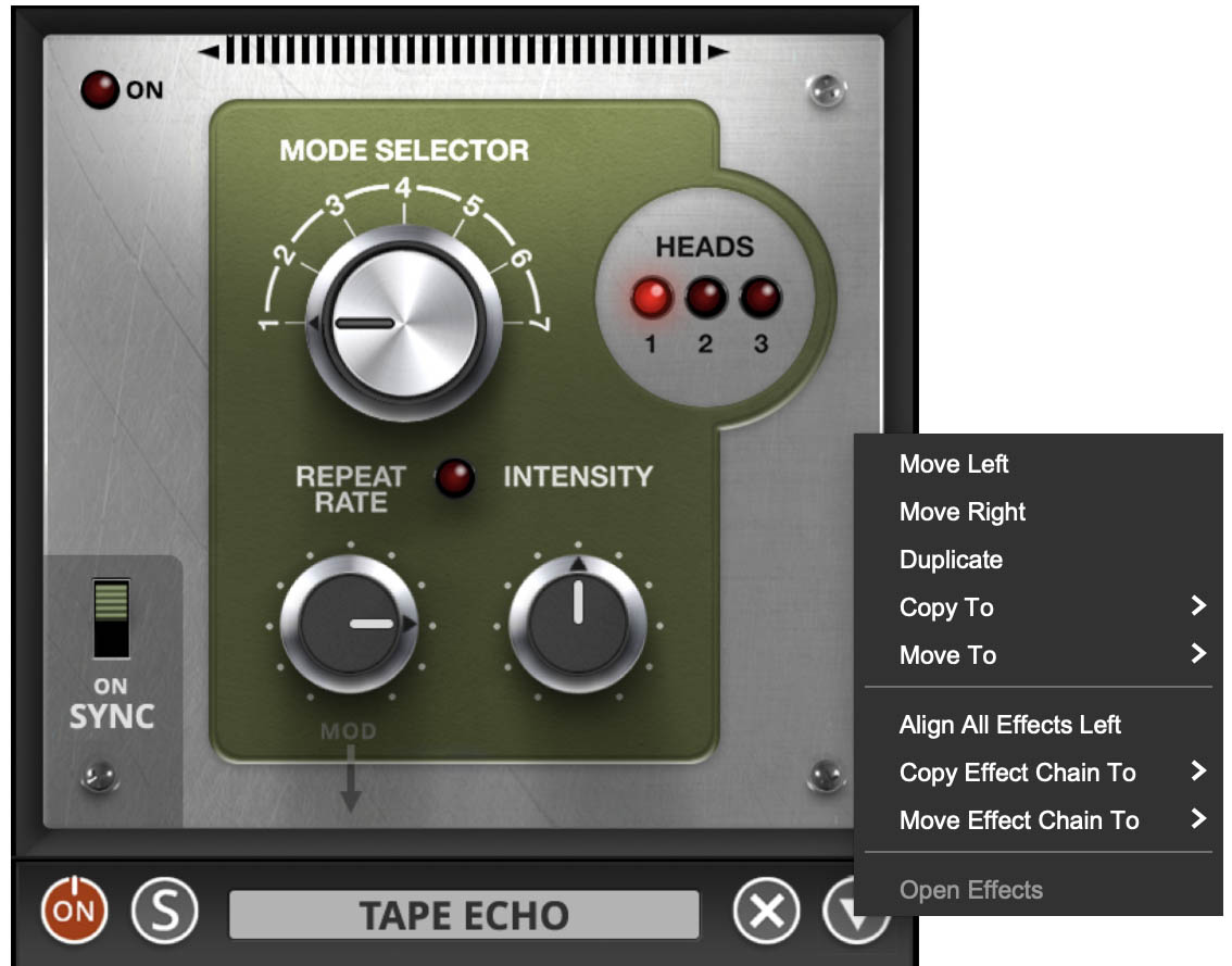 Practical Tip: For classic dub-style echo, select multiple heads with Intensity cranked high, then ride the Repeat Rate knob during playback for wild pitch sweeps. For more subtle use, stick to a single head and moderate intensity to add depth without overwhelming the mix.