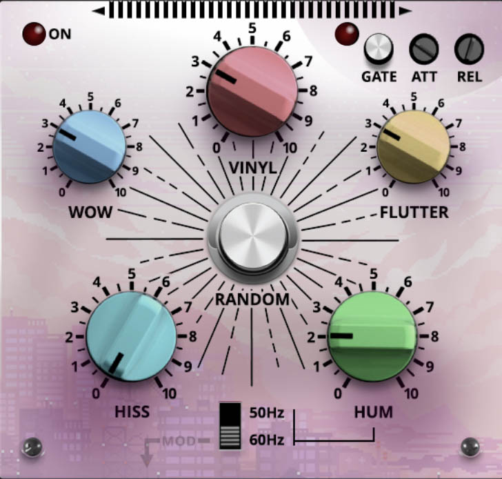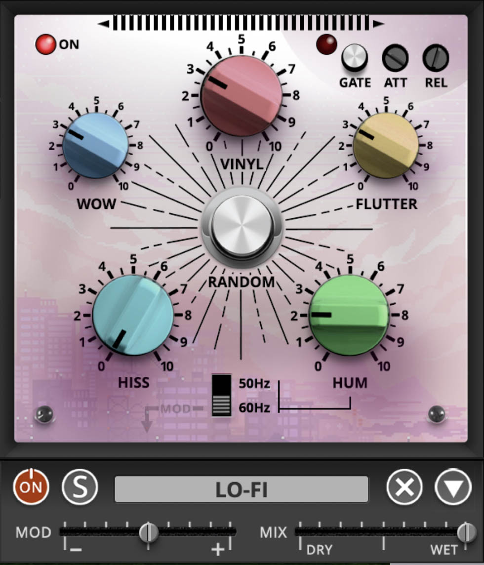 Lo-Fi Tip: For subtle retro flavor, add a touch of Wow and Hiss to synth pads. For full-on grit, crank Vinyl and Hum and let the Random knob do its thing. It's great for lo-fi hip-hop or downtempo textures that need a worn, nostalgic character.