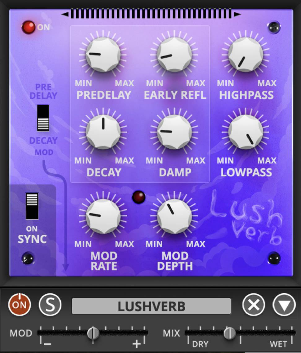 Where Galactic Reverb reaches for infinite, cosmic expanses, Lushverb focuses on silky smoothness and animated depth. It's the kind of reverb that flatters synths, vocals, and pads by wrapping them in a liquid halo.