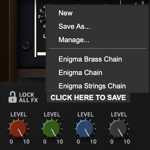Save a Chain – Display the Full Effects view → Use the Click Here To Save dropdown menu → Save As. Name it, reuse later.